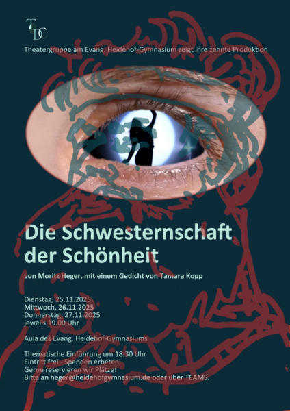 Die Theatergruppe TODC präsentiert ihre neue Inszenierung. Dienstag, 25.11.25 – Mittwoch, 26.11.25 – Donnerstag, 27.11.25, jeweils 19:00 Uhr in der Aula.