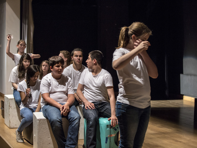 Die zehn Schülerinnen und Schüler der 6b und der Bergerschule versuchten in ihrem Stück herauszufinden, wie es sich anfühlt, fliehen zu müssen. In diesem Zusammenhang brachten sie ihre eigenen Geschichten auf die Bühne. Sie erzählten von ihren Fluchtversuchen der Kindheit. Die Begegnung mit Flüchtlingen und deren Schicksal berührte sie sehr. Es wurde im Verlauf des Stücks immer klarer, dass man Flucht nicht spielen kann. Ohne Zweifel trafen die Schauspieler damit ein besonderes Thema.
