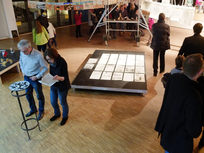 Freigelegt im Sinne von freigestellt von sonstiger schulischer Alltagsnutzung zeigt sich zum ersten Schultag nach den Faschingsferien die Aula als temporäre Galerie den Schülern, Eltern und Lehrern.
