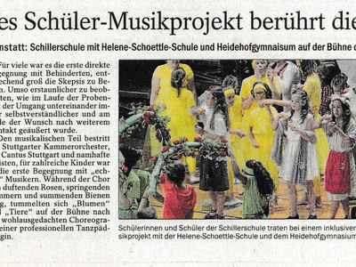 Aufgeführt am 2. Juli 2017 in der Liederhalle Stuttgart mit Schülerinnen und Schülern der Helene-Schoettle-Schule, der Schillerschule Bad Cannstatt und des Evangelischen Heidehof-Gymnasiums Stuttgart.