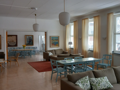 Auch hier gibt es feste bibliothekspädagogische Programme, an denen alle Klassen teilnehmen. An der Gärdesskolan werden Kinder und Jugendliche vom Vorschulalter bis einschließlich Klasse 9 unterrichtet. Die Schule ist sehr gut ausgestattet und besonders beeindruckend fand ich das sehr schöne Personalzimmer. Hier trifft sich das Kollegium. Ein seit Jahren pensionierter Deutschlehrer kommt immer noch täglich an die Schule um seine Zeitung zu lesen und im Lehrerzimmer seinen Kaffee zu trinken. Kein Wunder bei Designmöbeln, Kaminfeuer auf Großbildschirm und echter Kunst an den Wänden. Ob in der Bibliothek oder im Lehrerzimmer, als Besucherin merkt man überall, dass Bildung in Schweden eben keine lästige Pflichtaufgabe, sondern eine absolute Priorität des Staates ist.