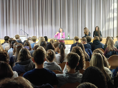 Eine ganz besondere Diskussionsrunde zum Thema „DEMOKRATIE STÄRKEN“ durften die Klassen 10 bis Jg2 am Mi., 01.10.25, erleben: Die Landtagspräsidentin von Baden-Württemberg, Muhterem Aras, nahm sich Zeit, um mit den Schülern über die Themen Gefahren und Stärkung der Demokratie und ihr Amt als Landtagspräsidentin ins Gespräch zu kommen.
