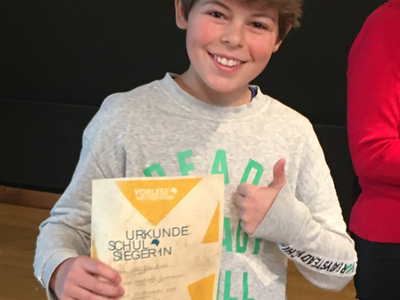 Pro Klasse waren zwei Klassensieger gewählt worden, die nun gegen die Sieger der Parallelklassen antraten. Getestet wurden die Schüler in zwei Disziplinen: Zuerst lasen sie drei Minuten einen geübten Text vor, in der zweiten Runde mussten sie dann zwei Minuten einen ungeübten Text vorlesen. Beides wurde von einer Jury aus Oberstufenschülern bewertet. Nachdem alle Kandidaten und Kandidatinnen vorgelesen hatten, zog sich die Jury in einen ruhigeren Raum zurück und beriet sich, wer der Gewinner sein sollte. Als die Jury wieder in die Aula zurückkam, wurde es spannend. Sie gab zunächst jedem Schüler Feedback, dann verkündete sie das Ergebnis: Ein Schüler aus der Klasse 6b hat gewonnen, erhielt eine Urkunde und wird nun gegen die Sieger der anderen Schulen antreten.