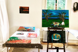 Bruno widmete sich ganz aktuellen Themen, seine Werke heißen: Waldbrand 1 bis 3, Flucht vor Chemtrails, Flache Erde und Müll in der Natur. Die Bilder zeigen eine sehr intensive künstlerische Auseinandersetzung mit starker Wirkung. Der Aufenthalt hat offenbar auch viel Spaß gemacht und ein paar neue Freundschaften sind dabei auch entstanden.