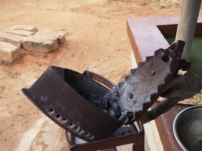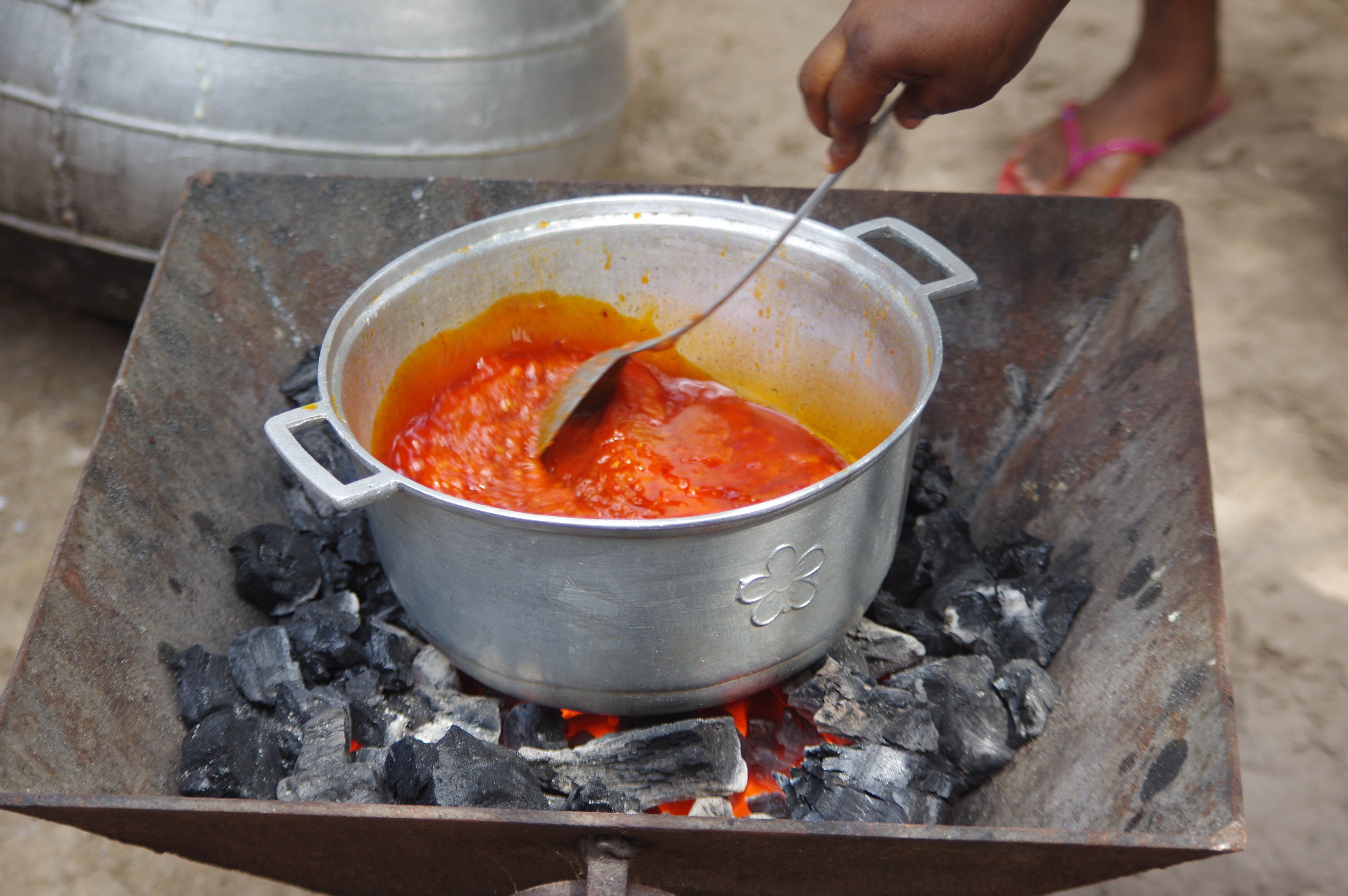 An der letzten „Station“ wurden der Fisch und die Tomatensauce in großen Töpfen gekocht. Das Holzkohlenfeuer dafür war zuvor mit schwarzen Plastiktüten entfacht worden. Hier waren verschiedene ältere Frauen beteiligt, die mit hoher Effizienz und Ausdauer arbeiteten, keine Bewegung war überflüssig. Gleichzeitig redeten alle in der Landessprache Ewé mit lauter Stimme durcheinander, während wir auf eine herzliche Art und Weise ausgelacht wurden, wenn wir etwas unbeholfen mithalfen.
