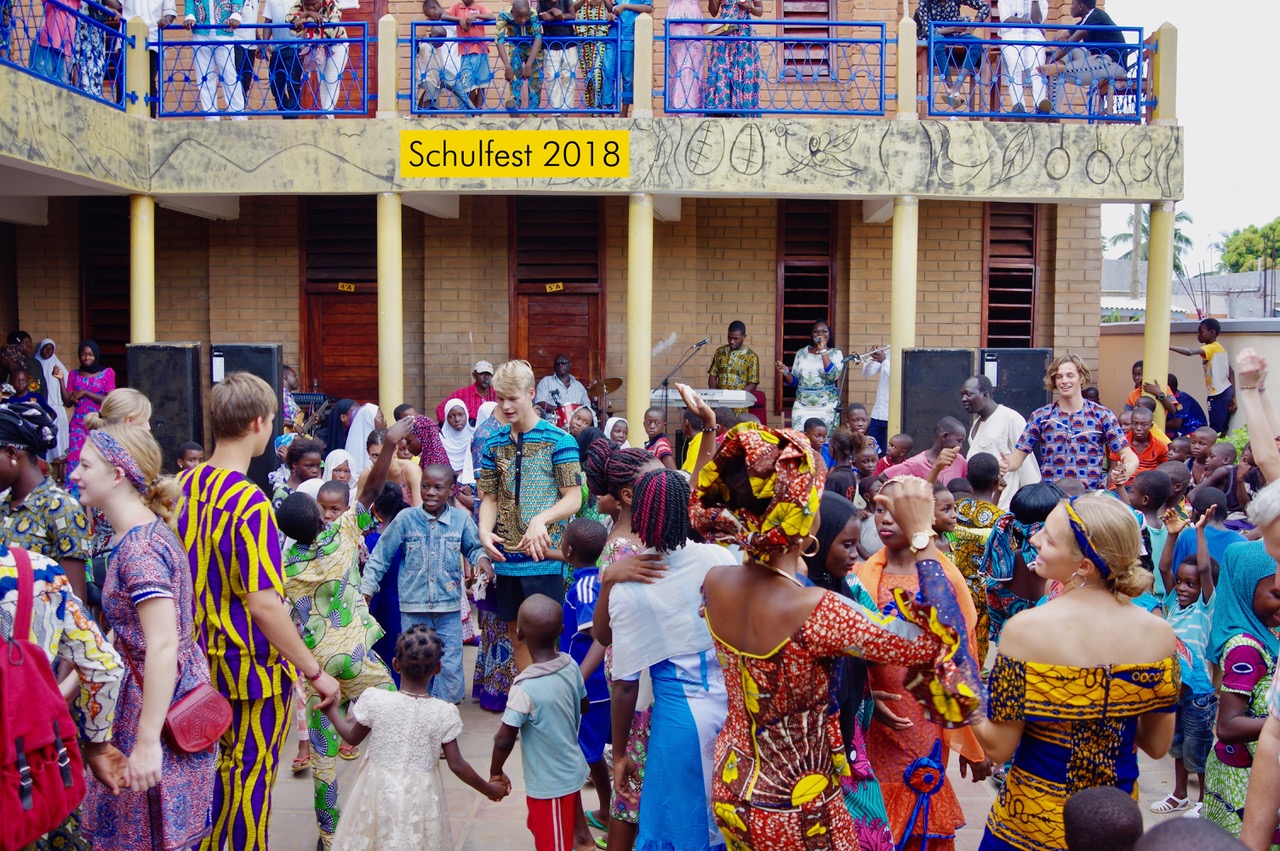 Am Samstag fand das große Schulfest statt, an dem wir unsere traditionellen Kleider angezogen haben und einen togolesischen Tanz vorführten.
